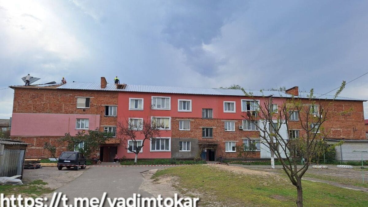 Наразі на обох об’єктах активно тривають роботи зі зняття пошкодженого покриття та монтажу нової покрівлі.